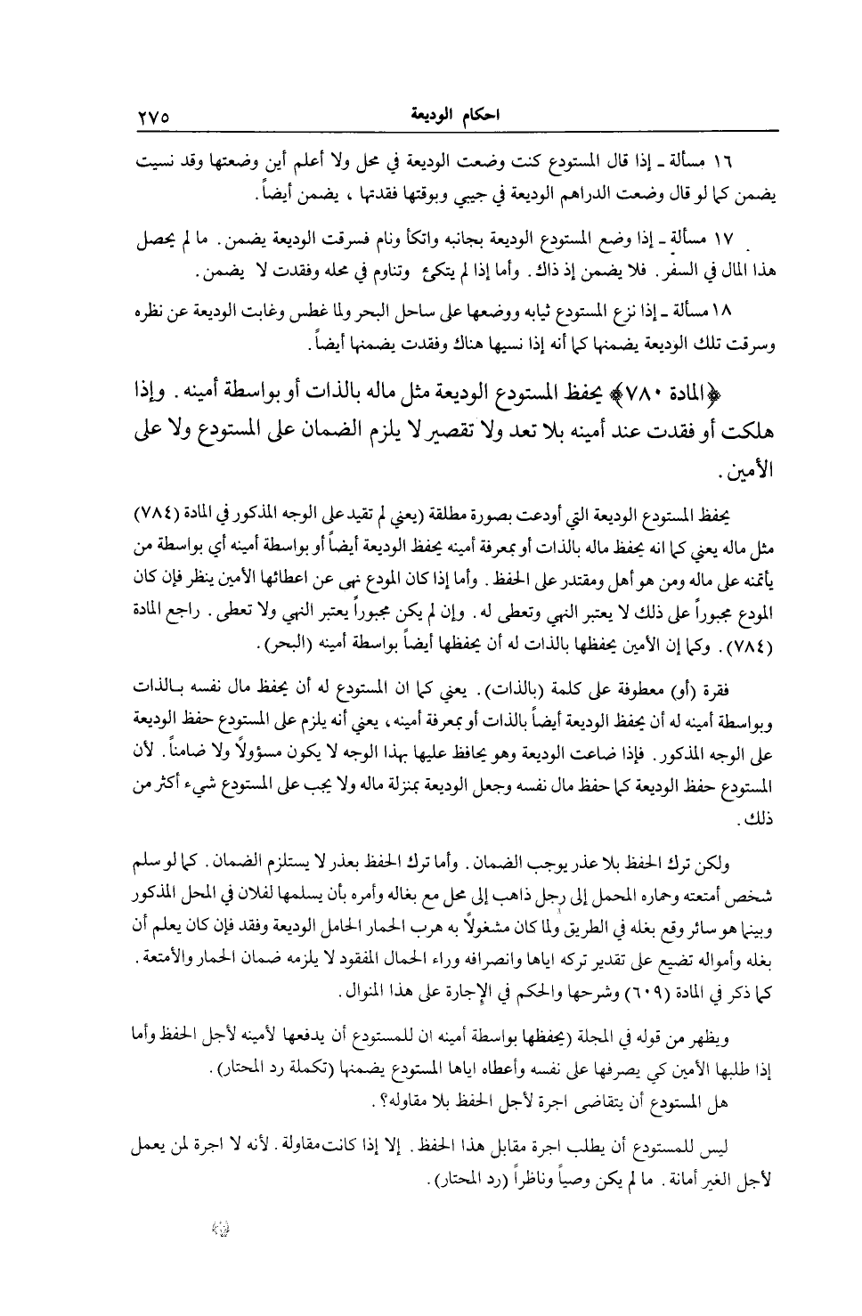 [ (الْمَادَّةُ 780) حِفْظُ الْمُسْتَوْدَع الْوَدِيعَة]
