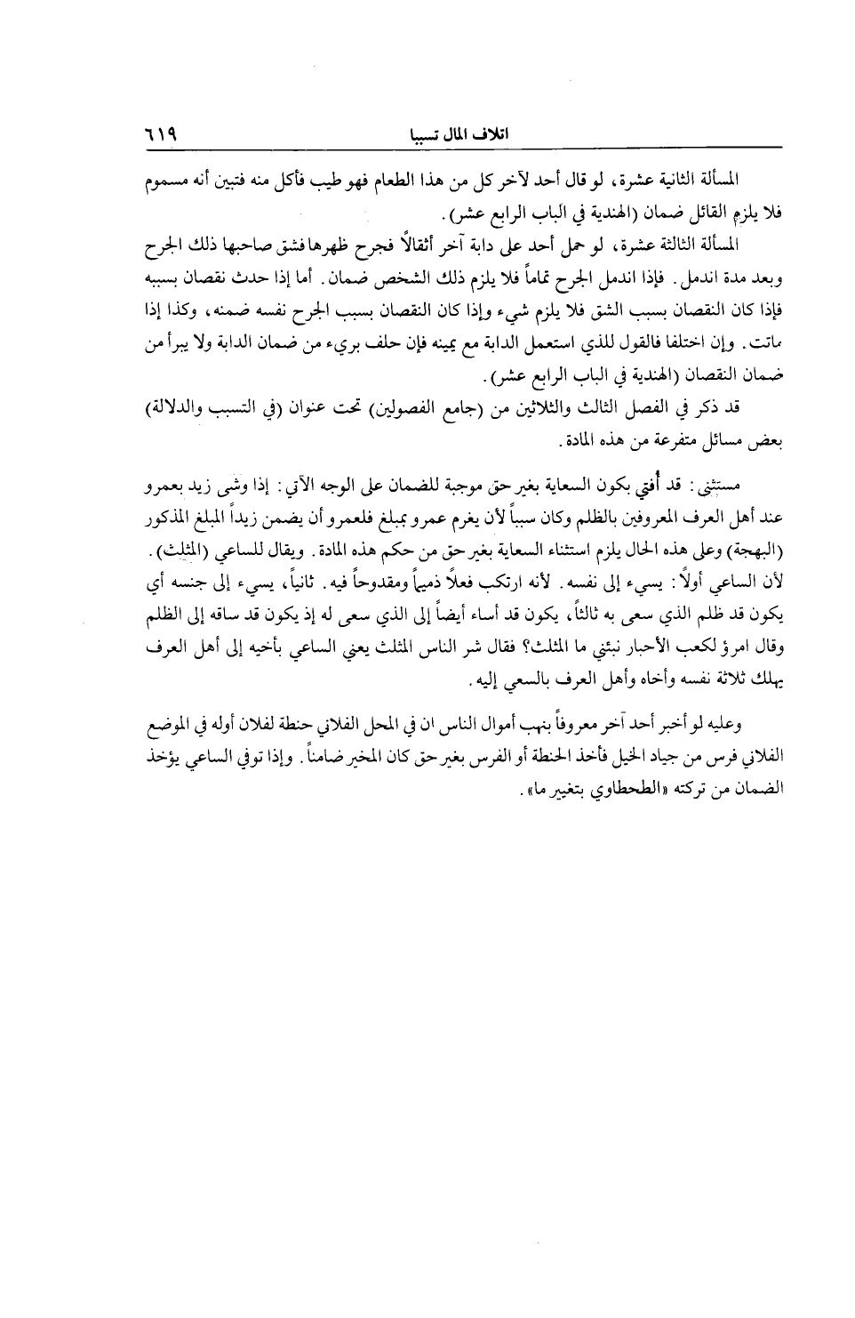 قَدْ ذَكَرَ فِي الْفَصْلِ الثَّالِثِ وَالثَّلَاثِينَ مِنْ (جَامِعِ الْفُصُولَيْنِ) تَحْتَ عِنْوَانِ (فِي التَّسَبُّبِ وَالدَّلَالَةِ) بَعْضَ مَسَائِلَ مُتَفَرِّعَةٍ مِنْ هَذِهِ الْمَادَّةِ.