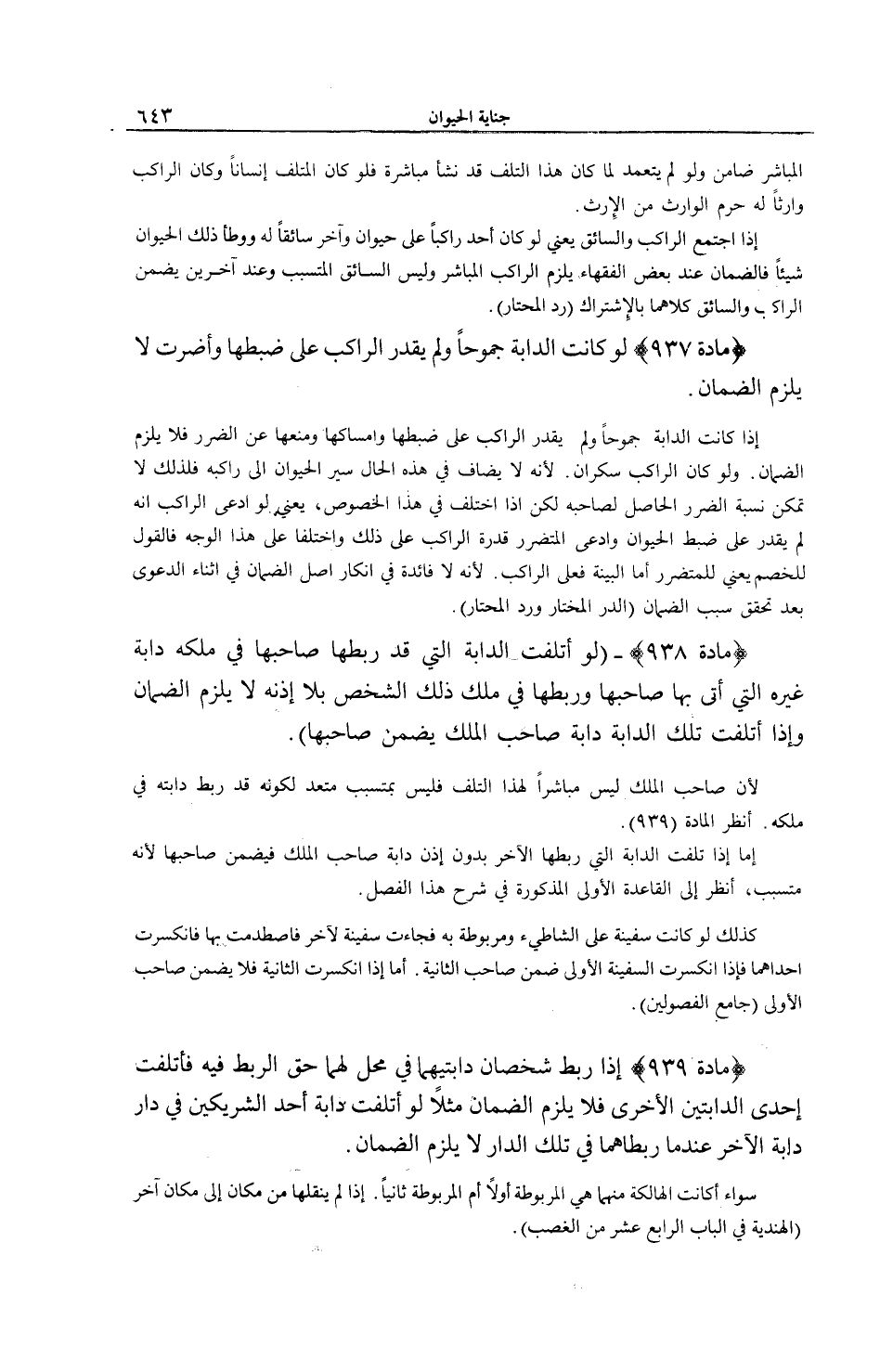 [ (مَادَّةُ 937) كَانَتْ الدَّابَّةُ جُمُوحًا وَلَمْ يَقْدِرْ الرَّاكِبُ عَلَى ضَبْطِهَا وَأَضَرَّتْ]