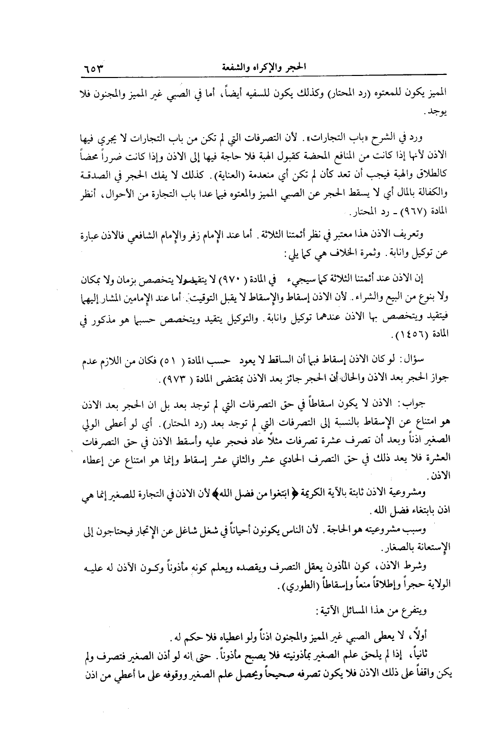 سُؤَالٌ: لَوْ كَانَ الْإِذْنُ إسْقَاطًا فَبِمَا أَنَّ السَّاقِطَ لَا يَعُودُ حَسَبَ الْمَادَّةِ (51) فَكَانَ مِنْ اللَّازِمِ عَدَمُ جَوَازِ الْحَجْرِ بَعْدَ الْإِذْنِ وَالْحَالُ أَنَّ الْحَجْرَ جَائِزٌ بَعْدَ الْإِذْنِ بِمُقْتَضَى الْمَادَّةِ (973) .