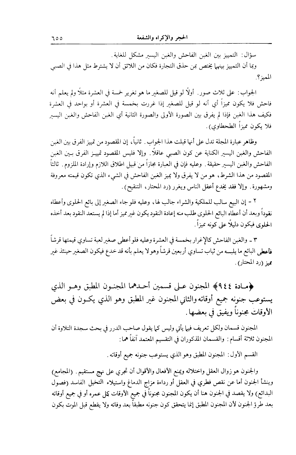 [ (مَادَّةُ 944) الْمَجْنُونُ عَلَى قِسْمَيْنِ]