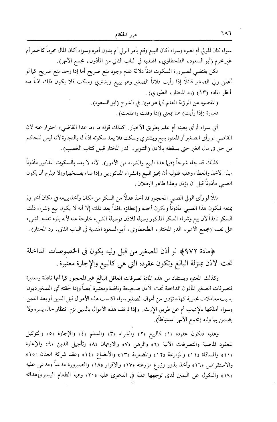 (مَادَّةٌ 972) لَوْ أُذِنَ لِلصَّغِيرِ مِنْ قِبَلِ وَلِيِّهِ يَكُونُ فِي الْخُصُوصَاتِ الدَّاخِلَةِ تَحْتَ الْإِذْنِ بِمَنْزِلَةِ الْبَالِغِ وَتَكُونُ عُقُودُهُ الَّتِي هِيَ كَالْبَيْعِ وَالْإِجَارَةِ مُعْتَبَرَةً.