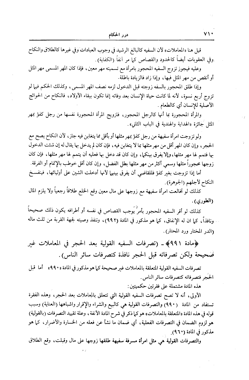 (مَادَّةُ 991) - (تَصَرُّفَاتُ السَّفِيهِ الْقَوْلِيَّةُ بَعْدَ الْحَجْرِ فِي الْمُعَامَلَاتِ غَيْرُ صَحِيحَةٍ وَلَكِنَّ تَصَرُّفَاتِهِ قَبْلَ الْحَجْرِ نَافِذَةٌ كَتَصَرُّفَاتِ سَائِرِ النَّاسِ) .