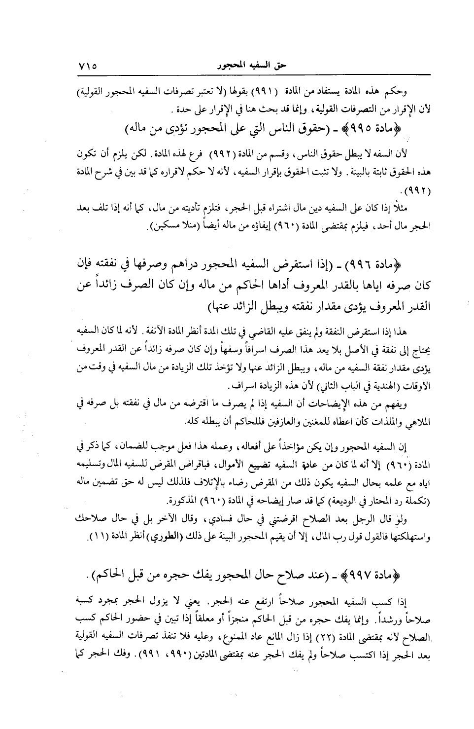 [ (مَادَّةُ 997) عِنْدَ صَلَاحِ حَالِ الْمَحْجُورِ يُفَكُّ حَجْرُهُ]