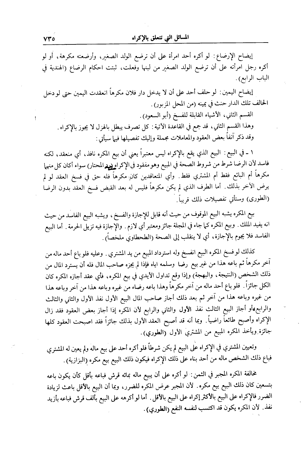 الْقِسْمُ الثَّانِي: الْأَشْيَاءُ الْقَابِلَةُ لِلْفَسْخِ، (أَبُو السُّعُودِ) وَهَذَا الْقِسْمُ الثَّانِي: قَدْ جُمِعَ فِي الْقَاعِدَةِ الْآتِيَةِ: كُلُّ تَصَرُّفٍ يَبْطُلُ بِالْهَزْلِ لَا يَجُوزُ بِالْإِكْرَاهِ. وَقَدْ ذَكَرَ آنِفًا بَعْضَ الْعُقُودِ وَالْمُعَامَلَاتِ مُجْمَلَةً وَإِلَيْكَ تَفْصِيلُهَا فِيمَا سَيَأْتِي: