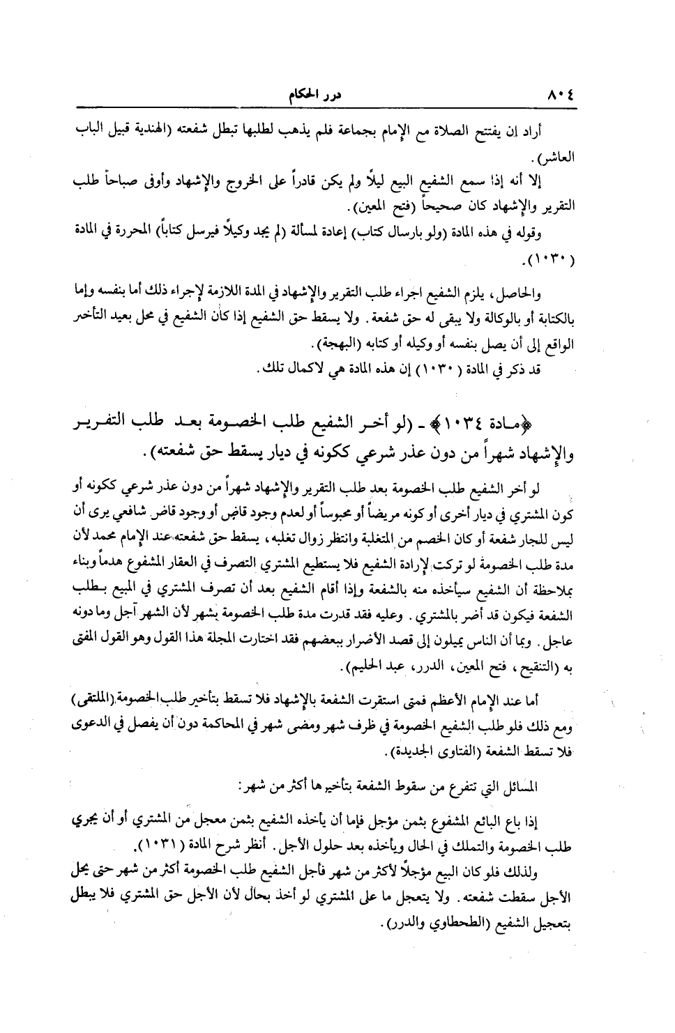 [ (مَادَّةُ 1034) لَوْ أَخَّرَ الشَّفِيعُ طَلَبَ الْخُصُومَةِ شَهْرًا مِنْ دُونِ عُذْرٍ]