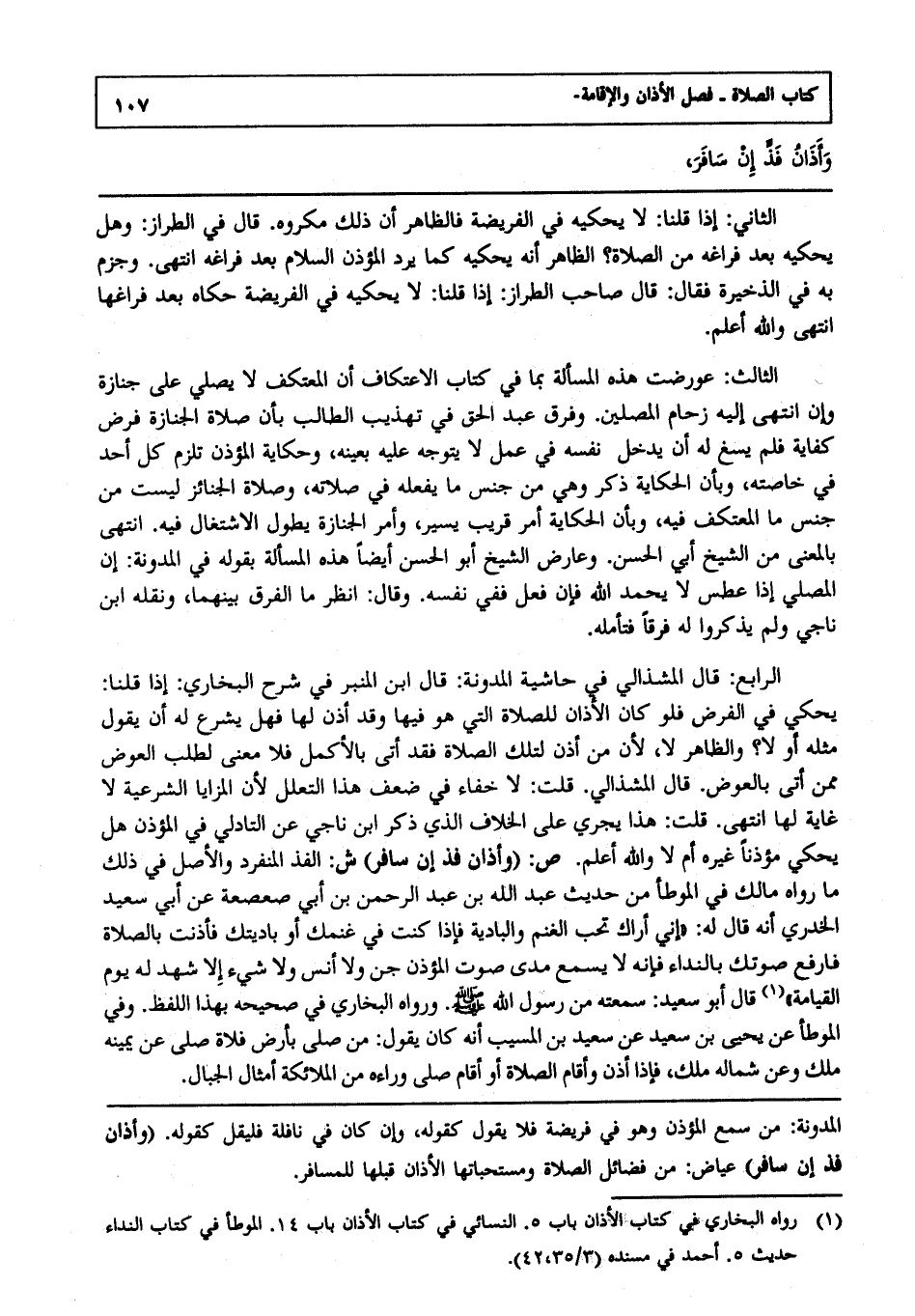 1 رواه البخاري في كتاب الأذان باب 14.الموطأ في كتاب النداء حديث 5, أحمد في مسنده (3/ 35, 42)