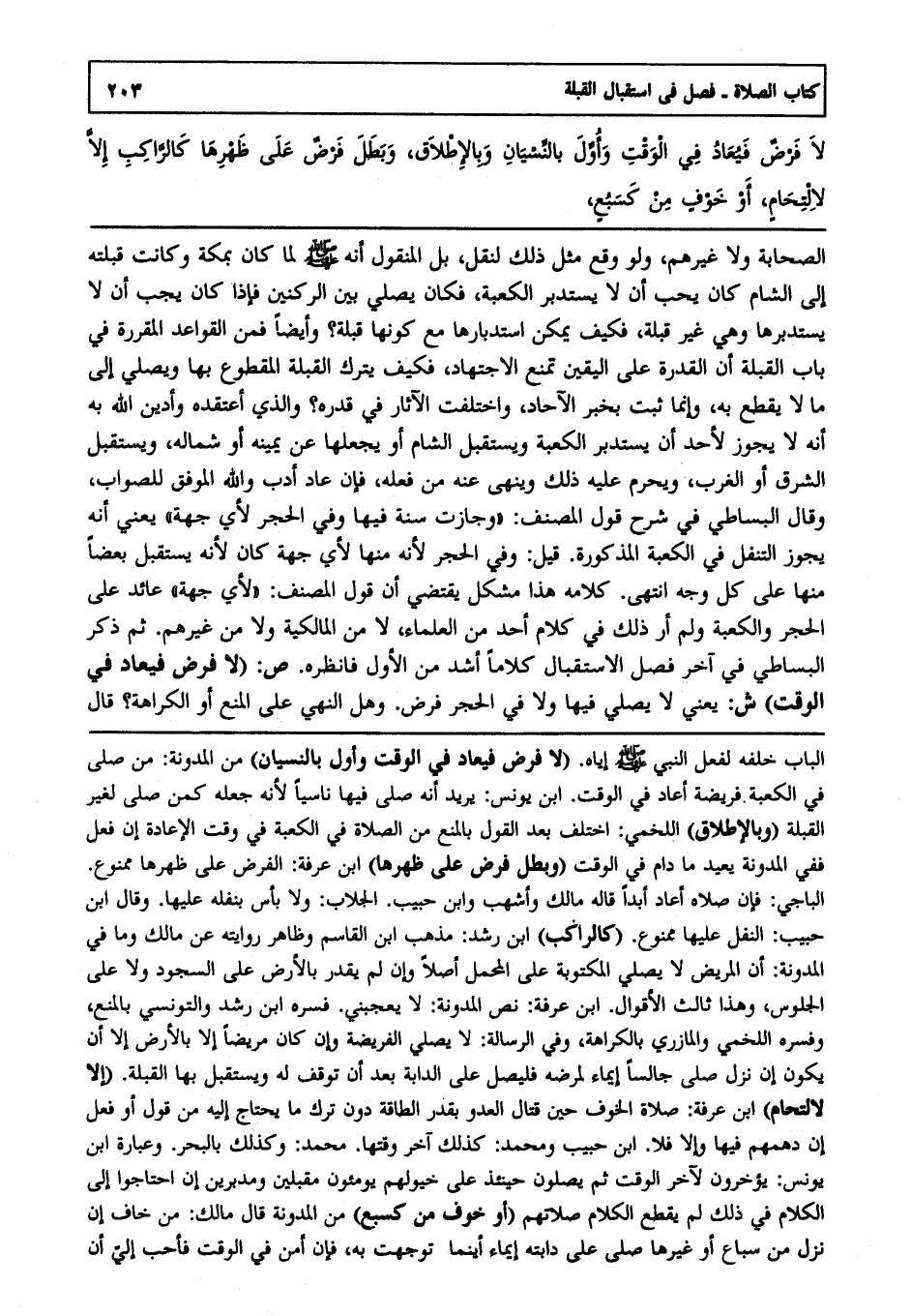 ص: "لا فرض فيعاد في الوقت" ش: يعني لا يصلى فيها ولا في الحجر فرض وهل النهي على المنع أو الكراهة ؟ قال