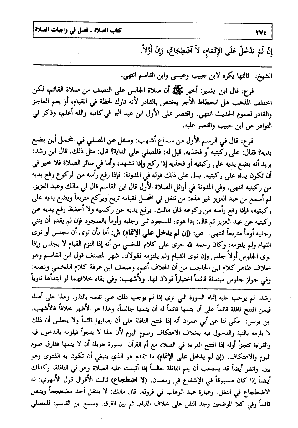إن لم يدخل على الإتمام لا اضطجاع وإن أولا