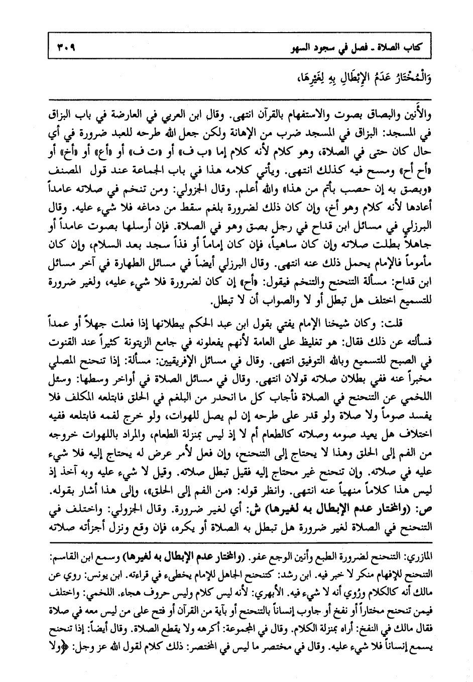 ص:"والمختار عدم الإبطال به لغيرها" ش أي لغير ضرورة وقال الجزولي: واختلف في التنحنح في الصلاة لغير ضرورة هل تبطل به الصلاة أو يكره ؟ فإن وقع ونزل أجزأته صلاته