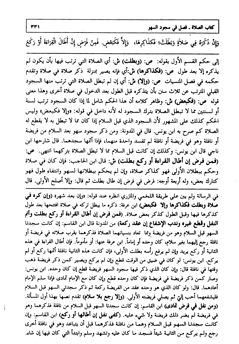 ص: "فكبعض" ش: وظاهر كلامه أن هذا الحكم شامل لما إذا كان السجود ترتب لسنة أو لسنتين مما لا تبطل الصلاة بترك السجود له ; لأنه داخل في قوله وإلا فكبعض وليس الحكم كذلك على المشهور ; لأن السجود الذي قبل السلام إذا كان مما لا تبطل به لا يقطع له الصلاة كما صرح به ابن يونس قال في المدونة ومن ذكر سجود سهو بعد السلام من فريضة أو نافلة وهو في فريضة أو نافلة لم تفسد واحدة منهما فإذا أتمها سجدهما قال شارحها ابن ناجي: قال ابن يونس وكذلك إن كانت قبل السلام مما لا تبطل الصلاة بتركهما انتهى.