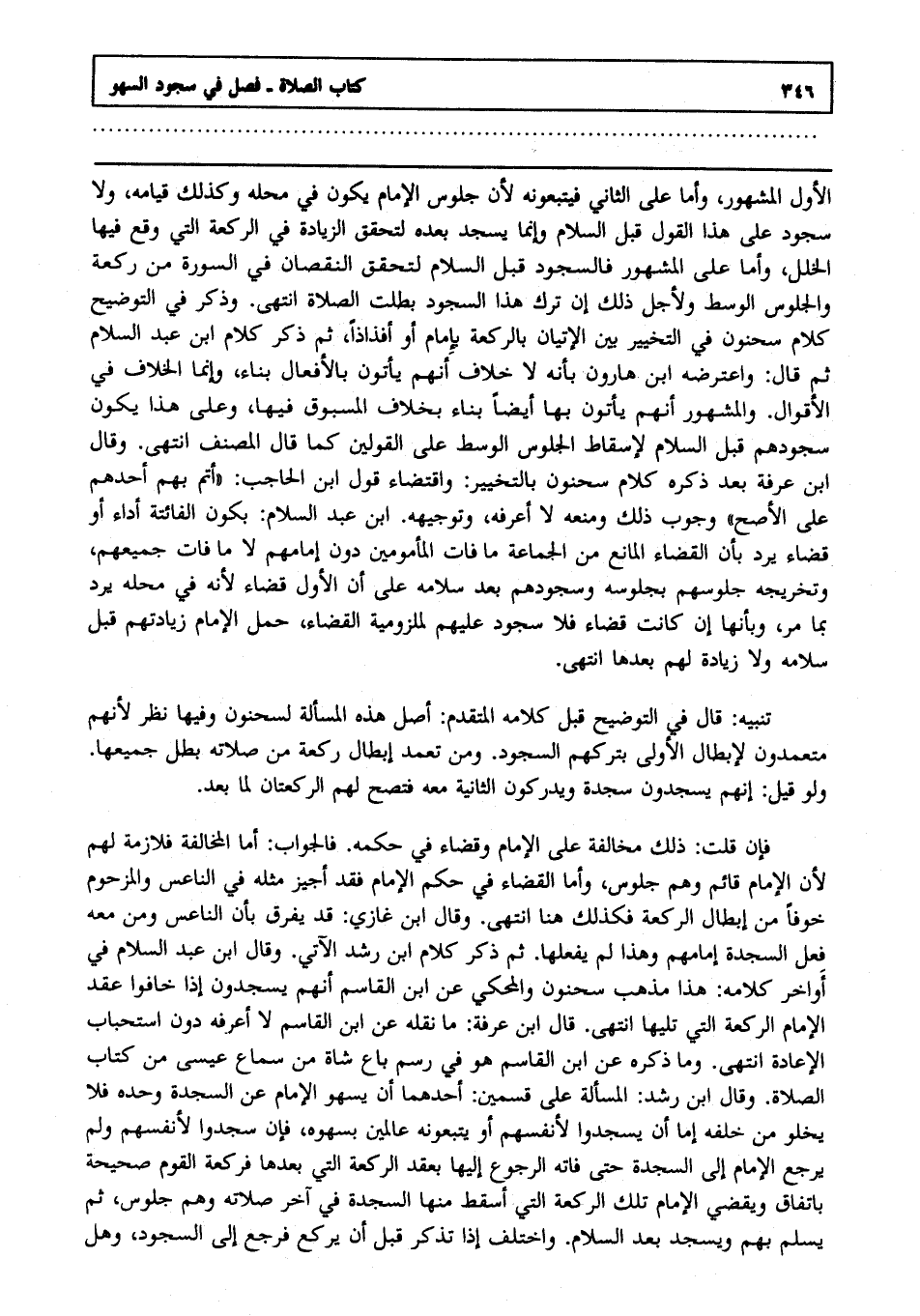 فإن قلت: ذلك مخالفة على الإمام وقضاء في حكمه فالجواب: أما المخالفة فلازمة لهم ; لأن الإمام قائم وهم جلوس, وأما القضاء في حكم الإمام فقد أجيز مثله في الناعس والمزحوم خوفا من إبطال الركعة فكذلك هنا, انتهى. وقال ابن غازي: قد يفرق بأن الناعس ومن معه فعل السجدة أمامهم وهذا لم يفعلها, ثم ذكر كلام ابن رشد الآتي, وقال ابن عبد السلام في أواخر كلامه: هذا مذهب سحنون, والمحكي عن ابن القاسم أنهم يسجدون إذا خافوا عقد الإمام الركعة التي تليها, انتهى. قال ابن عرفة: ما نقله عن ابن القاسم لا أعرفه دون استحباب الإعادة, انتهى. وما ذكره عن ابن القاسم هو في رسم باع شاة من سماع عيسى من كتاب الصلاة, وقال ابن رشد المسألة على قسمين: أحدهما, أن يسهو الإمام عن السجدة وحده فلا يخلو من خلفه إما أن يسجدوا لأنفسهم أو يتبعونه عالمين بسهوه فإن سجدوا لأنفسهم ولم يرجع الإمام إلى السجدة حتى فاته الرجوع إليها بعقد الركعة التي بعدها فركعة القوم صحيحة باتفاق, ويقضي الإمام تلك الركعة التي أسقط منها السجدة في آخر صلاته وهم جلوس, ثم يسلم بهم ويسجد بعد السلام, واختلف إذا تذكر قبل أن يركع فرجع إلى السجود وهل