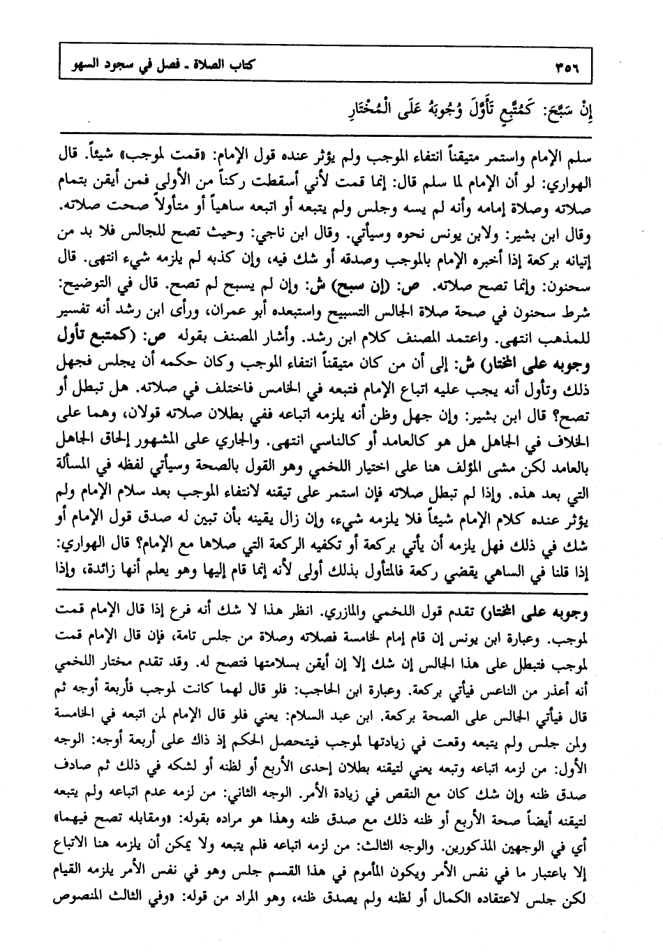 إن سبح كمتبع تأول وجوبه على المختار