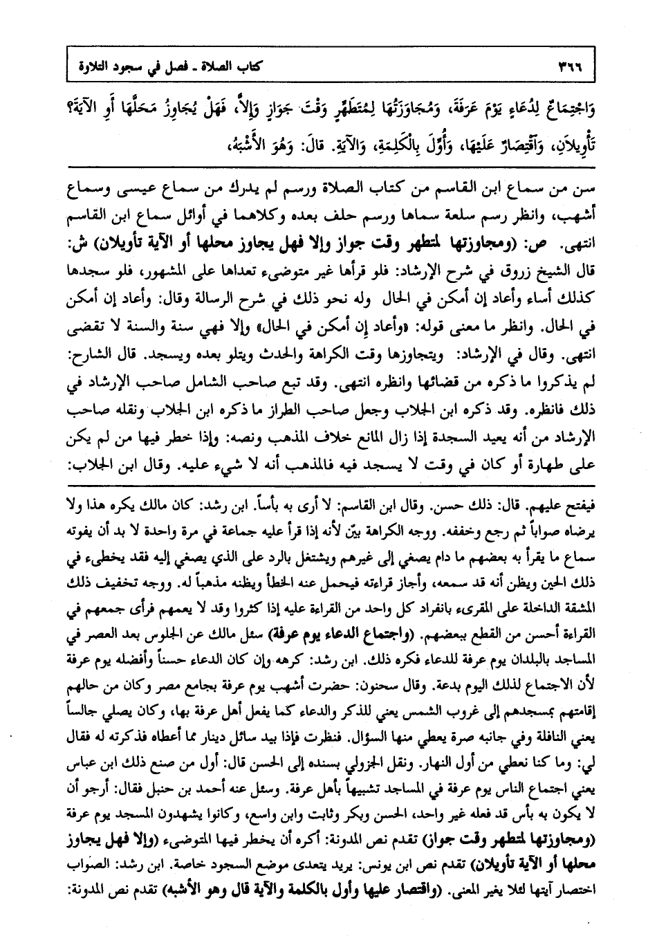 واجتماع لدعاء يوم العرفة ومجاوزتها لمتطهر وقت جواز وإلا فهل يجاوز محلها أو الآية تأويلان واقتصار عليها وأول بالكلمة والآية قال وهو الأشبه