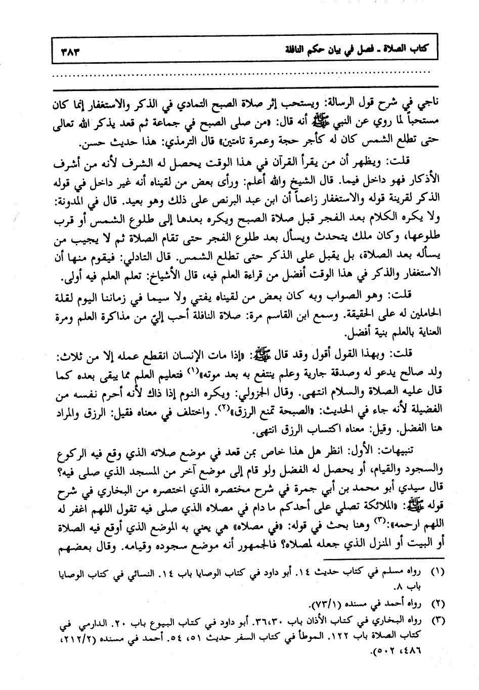 (3) رواه البخاري في كتاب الأذان باب 30. 36. أبو داود في كتاب البيوع باب 20. الدارمي في كتاب الصلاة باب 122. الموطأ في كتاب السفر حديث 51, 54. أحمد في مسنده (2/212, 486, 502)