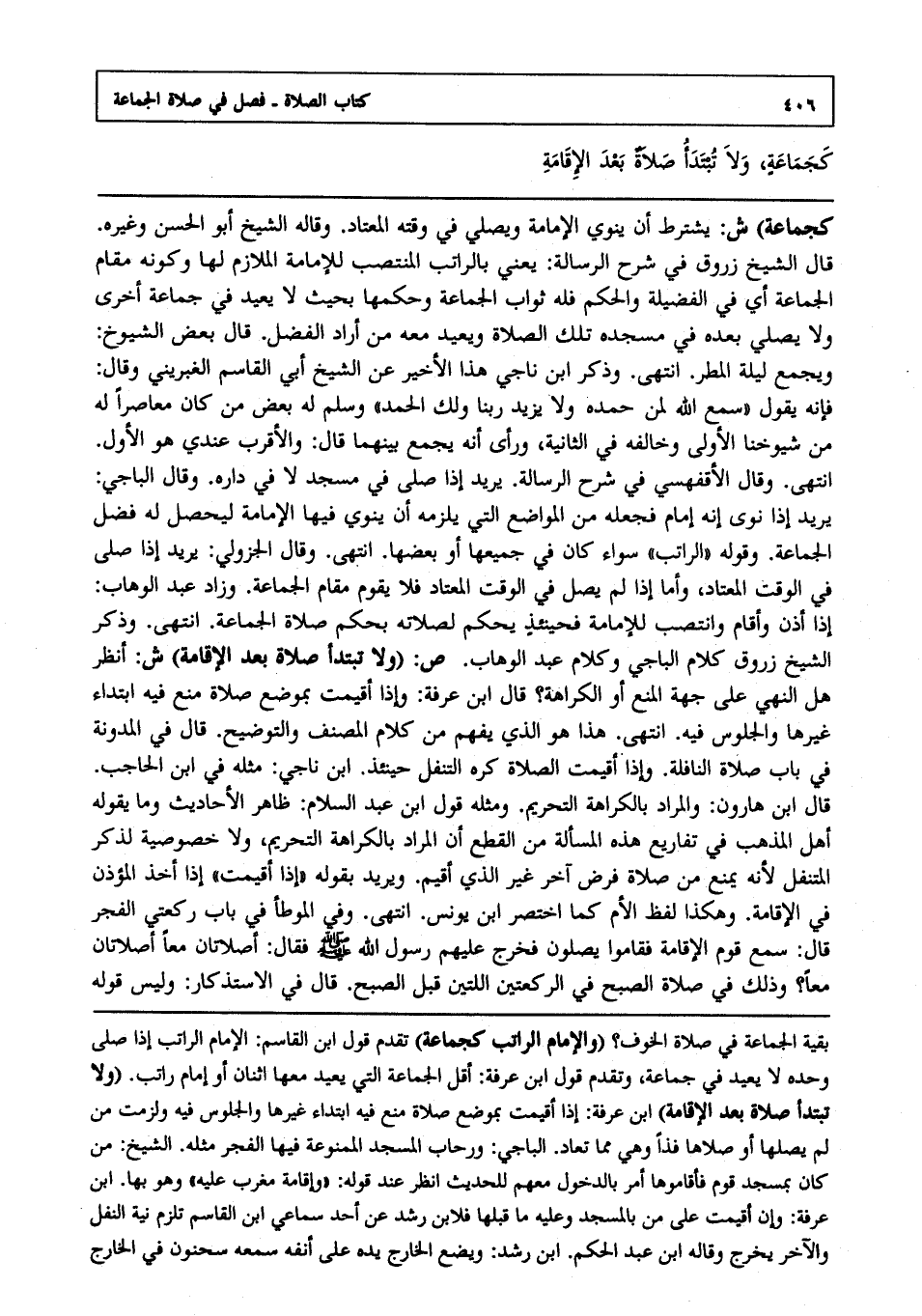 كجماعة ولا تبتدأ صلاة بعد الإقامة