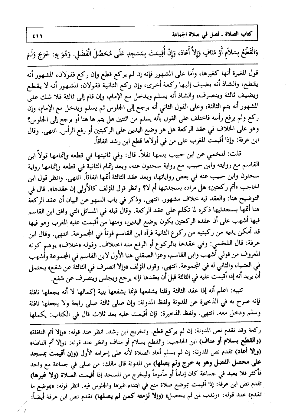 تنبيه : اعلم أنه إذا عقد الثالثة وقلنا يشفعها فإنما يشفعها بنية كمالها لا أنه يجعلها نافلة فإنه صرح به في الذخيرة عن المدونة ولفظ المدونة: وإن صلى ثالثة صلى رابعة, ولا يجعلها نافلة وسلم ودخل معه انتهى. ولفظ الذخيرة: فإن أقيمت عليه بعد ثلاث قال في الكتاب: يكملها