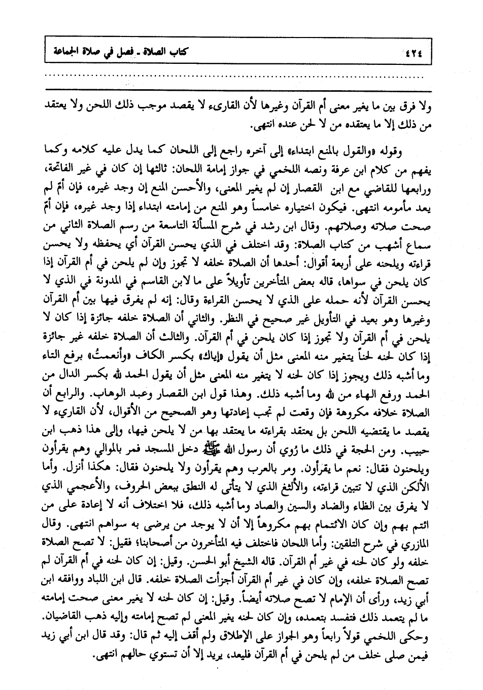 ولا فرق بين ما يغير معنى أم القرآن وغيرها ; لأن القارئ لا يقصد موجب ذلك اللحن, ولا يعتقد من ذلك إلا ما يعتقده من لا لحن عنده انتهى.