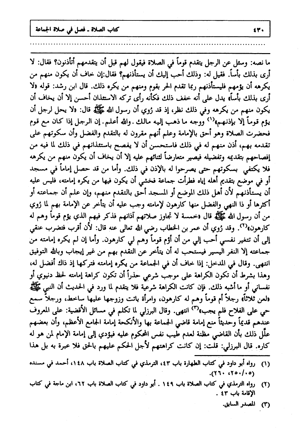 (2) رواه الترمذي في كتاب الصلاة باب 149. أبو داود في كتاب الصلاة باب 62, ابن ماجه في كتاب الإقامة باب 43.