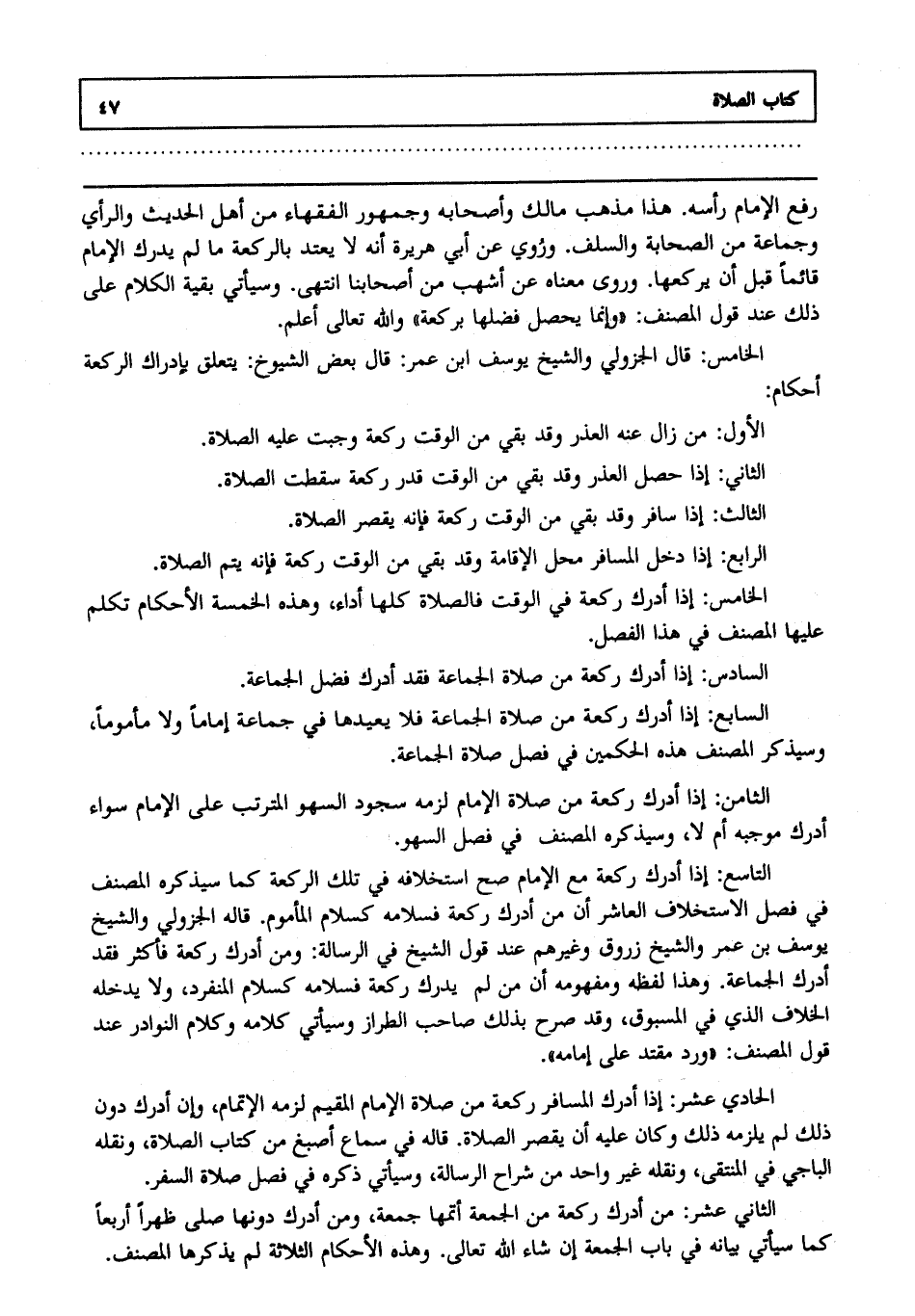 الخامس قال يوسف ابن عمر قال بعض الشيوخ يتعلق بإدراك الركعة أحكام.