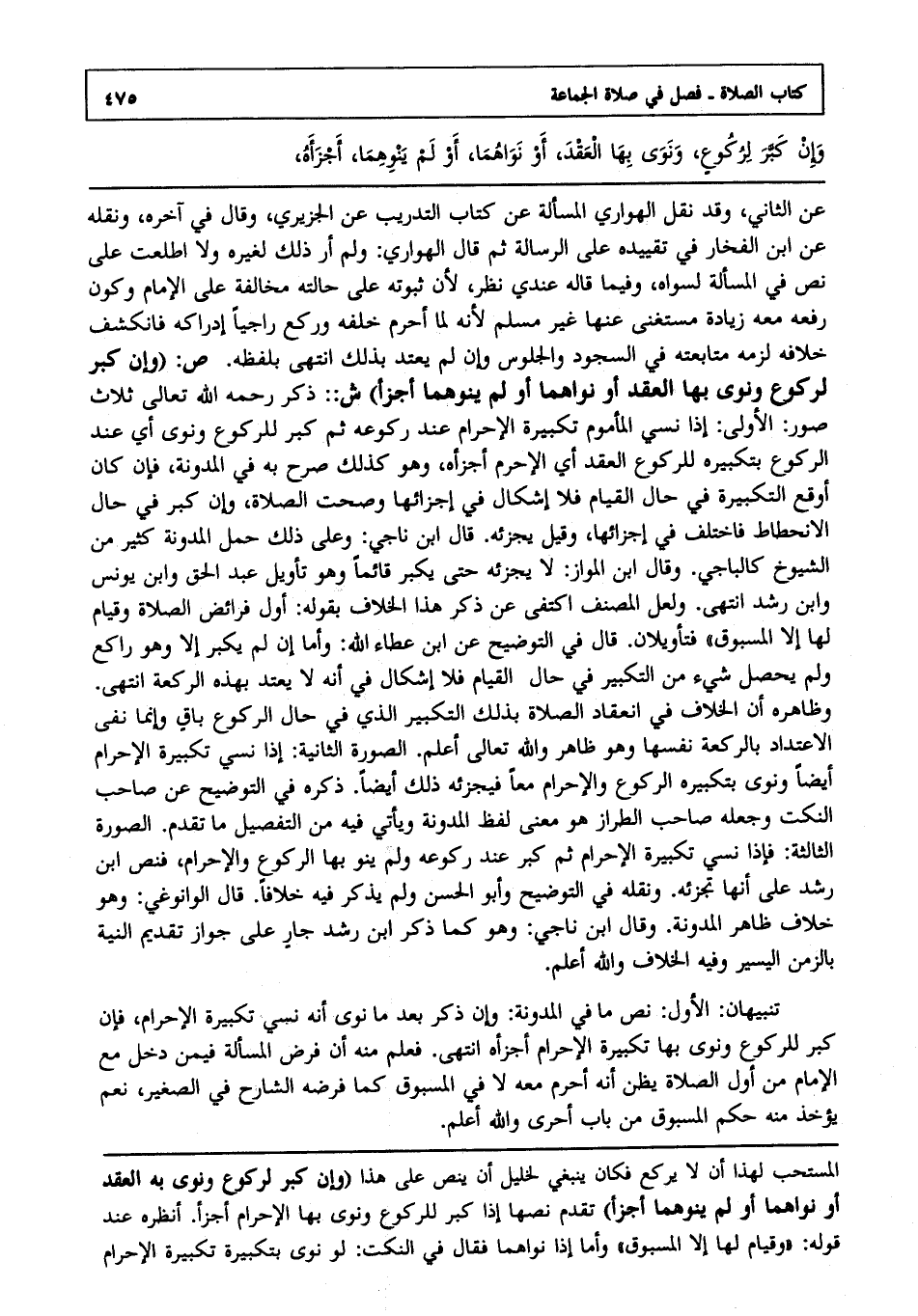 تنبيهان: الأول: نص ما في المدونة, وإن ذكر بعد ما نوى أنه نسي تكبيرة الإحرام, فإن كبر للركوع ونوى بها تكبيرة الإحرام أجزأه انتهى, فعلم منه أن فرض المسألة فيمن دخل مع الإمام من أول الصلاة يظن أنه أحرم معه لا في المسبوق كما فرضه الشارح في الصغير, نعم يؤخذ منه حكم المسبوق من باب أحرى, والله أعلم.