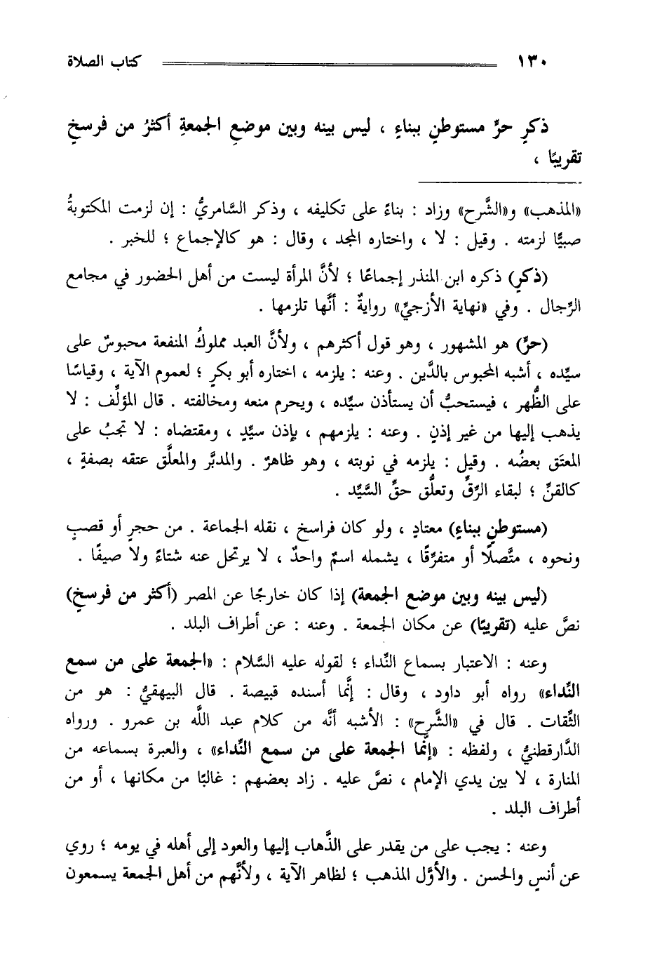ذكر حر مستوطن ببناء ليس بينه وبين موضع الجمعة أكثر من فرسخ تقريبا.