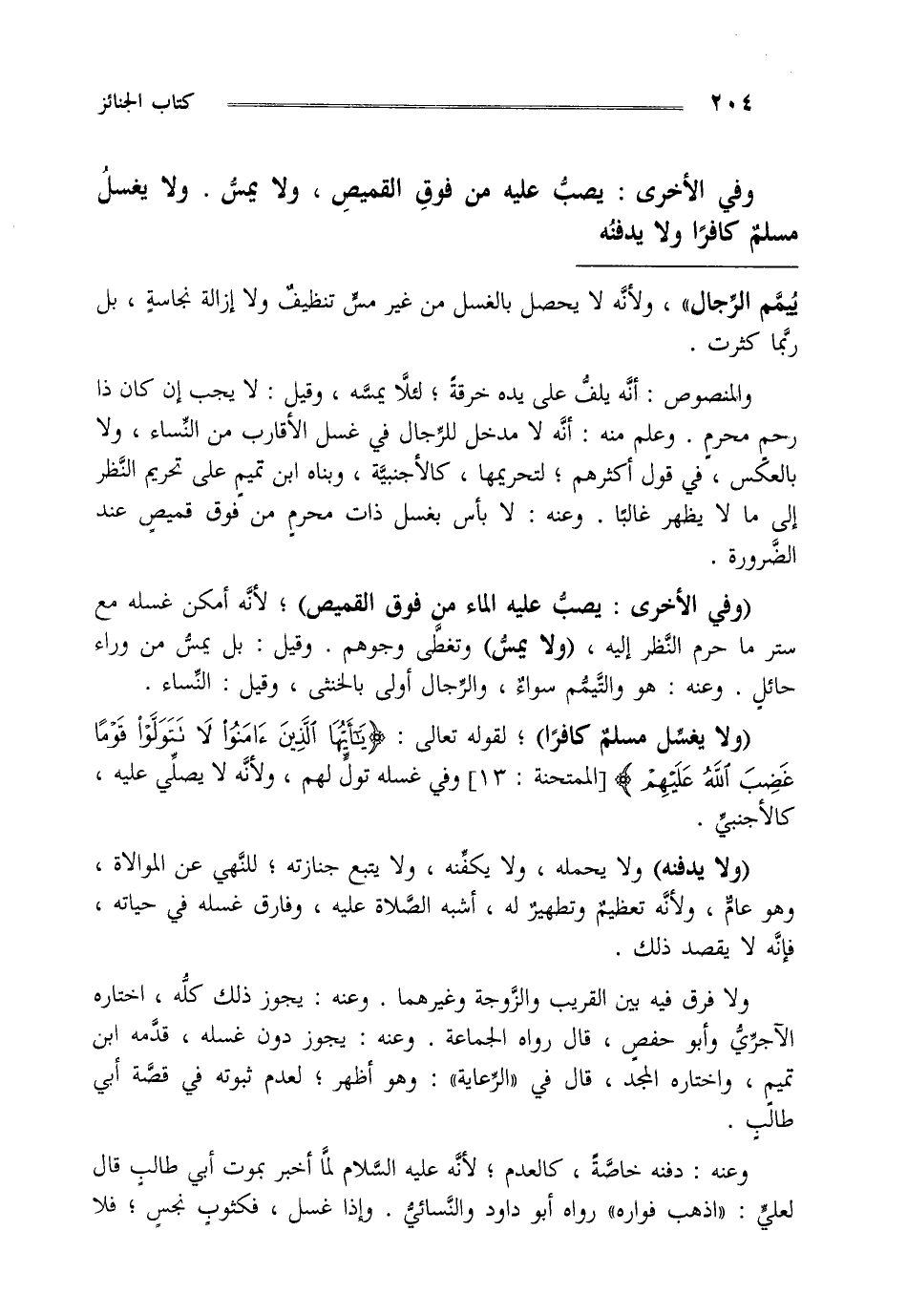 "ولا يغسل مسلم كافرا" لقوله تعالى {يَا أَيُّهَا الَّذِينَ آمَنُوا لا تَتَوَلَّوْا قَوْماً غَضِبَ اللَّهُ عَلَيْهِمْ} [الممتحنة: من الآية13] وفي غسله تول لهم ولأنه لا يصلي عليه كالأجنبي.