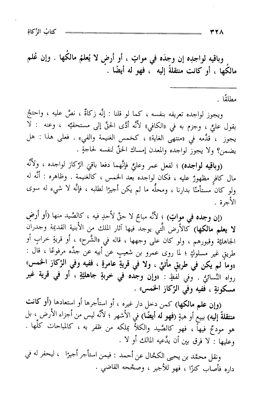 وباقيه لواجده إن وجده في موات ، أو أرض لا يعلم مالكها. وإن علم مالكها ، أو كانت منتقلة إليه ، فهو له أيضا.