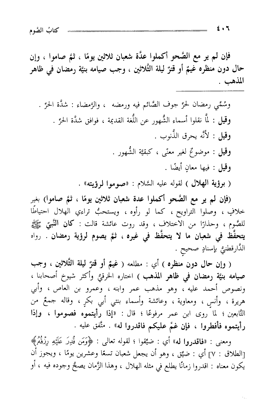 ومعنى "فاقدروا له" أي ضيقوا لقوله تعالى {وَمَنْ قُدِرَ عَلَيْهِ رِزْقُهُ} [الطلاق: من الآية7] أي ضيق وهو أن يجعل شعبان تسعا وعشرين يوما ويجوز أن يكون معناه اقدروا زمانا يطلع في مثله الهلال وهذا الزمان يصح وجوده فيه أو