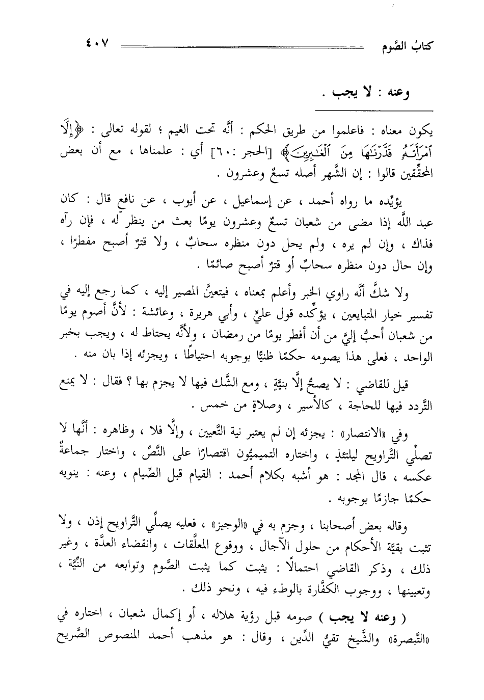 "وعنه لا يجب" صومه قبل رؤية هلاله أو إكمال شعبان اختاره في التبصرة والشيخ في تقي الدين وقال هو مذهب أحمد المنصوص الصريح