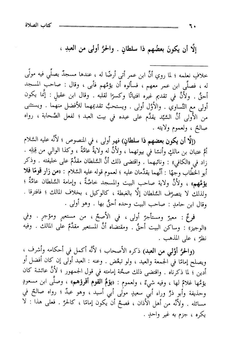 إلا أن يكون بعضهم ذا سلطان والحر أولى من العبد،.