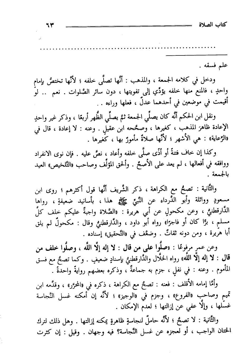 والثانية تصح مع الكراهة ذكر الشريف أنها قول أكثرهم روى ابن مسعود وواثلة وأبو الدرداء عن النبي صلى الله عليه وسلم هذا بأسانيد ضعيفة رواها الدارقطني وعن مكحول عن أبي هريرة الصلاة واجبة عليكم خلف كل مسلم برا كان أو فاجرا رواه أبو داود والدارقطني وقال مكحول لم يلق أبا هريرة ومن دونه ثقات وضعف في التحقيق إسناده.