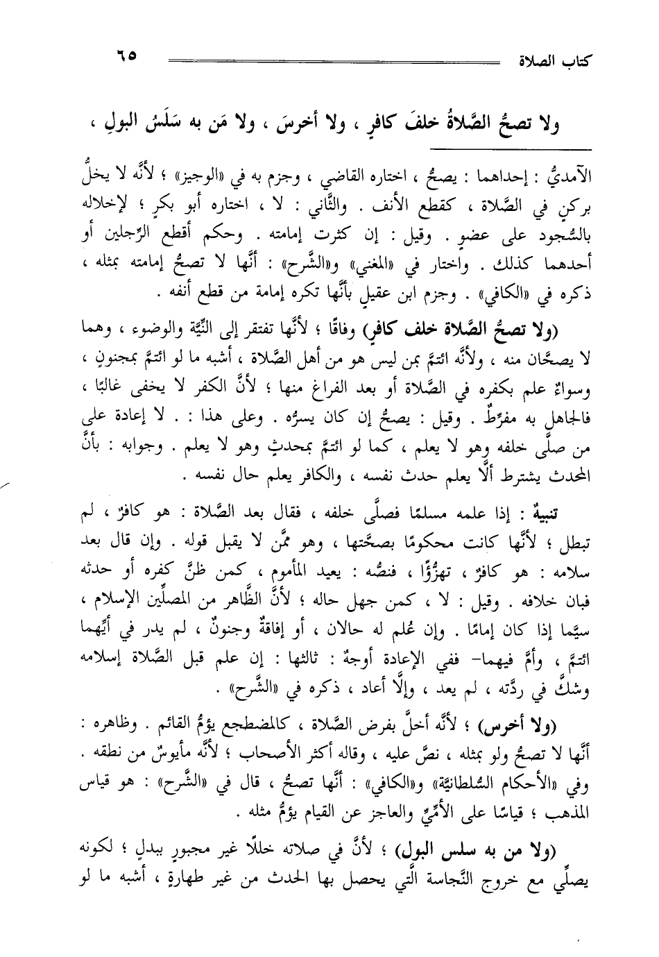 ولا تصح الصلاة خلف كافر ولا أخرس ولا من به سلس البول.