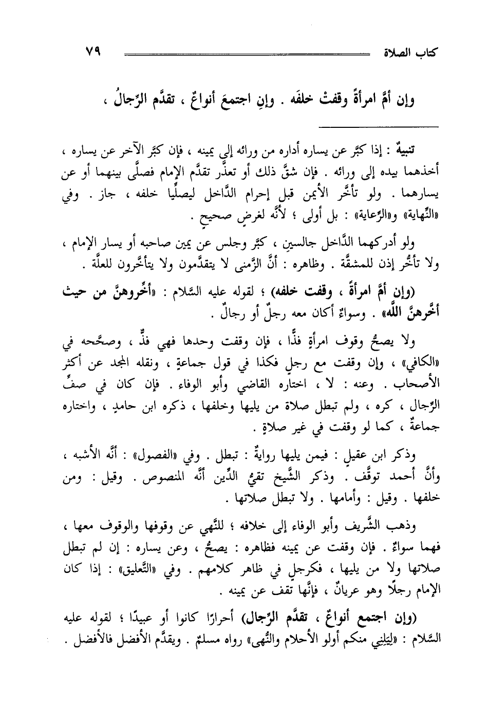 "وإن اجتمع أنواع تقدم الرجال" أحرارا كانوا أو عبيدا لقوله عليه السلام " ليلني منكم أولو الأحلام " والنهى رواه مسلم ويقدم الأفضل فالأفضل .