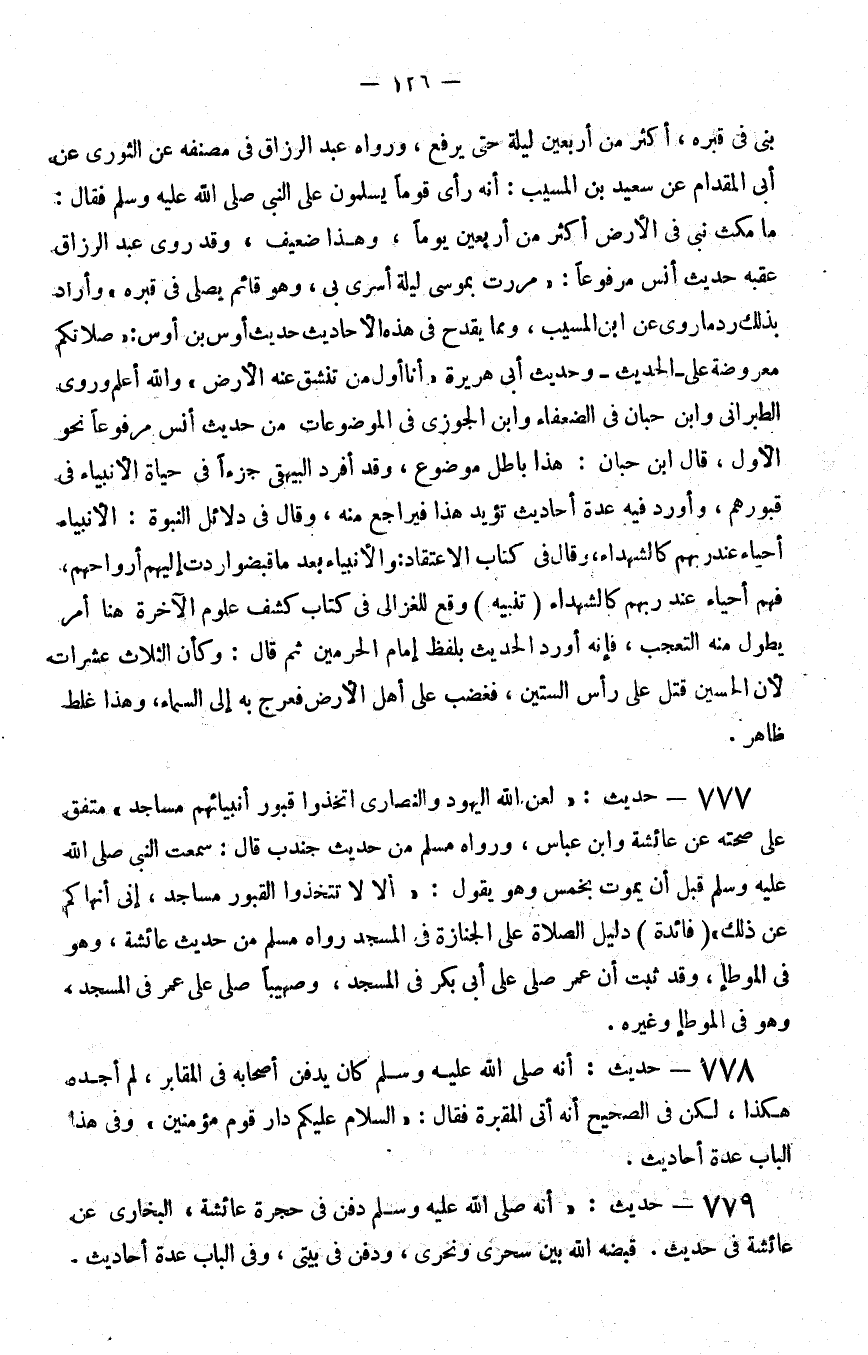 777 - حديث لعن الله اليهود والنصارى اتخذوا قبور أنبيائهم مساجد متفق على صحته عن عائشة وابن عباس ورواه مسلم من حديث جندب قال سمعت النبي صلى الله عليه و سلم قبل أن يموت بخمس وهو يقول ألا لا تتخذوا القبور مساجد إني أنهاكم عن ذلك