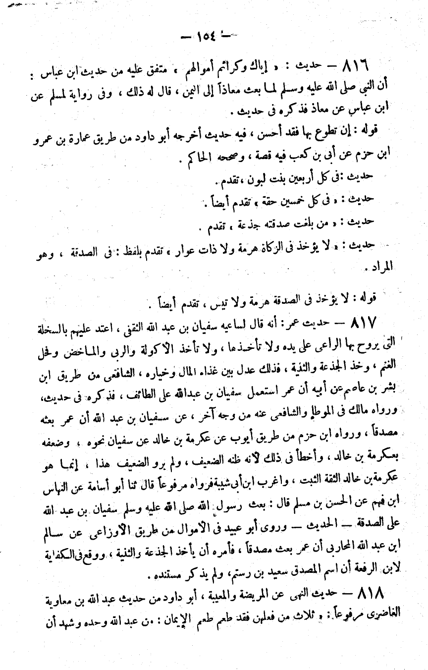 816 - حديث إياك وكرائم أموالهم متفق عليه من حديث بن عباس أن النبي صلى الله عليه و سلم لما بعث معاذا إلى اليمن قال له ذلك وفي رواية لمسلم عن بن عباس عن معاذ فذكره في حديث