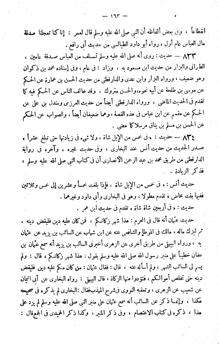 834 - حديث في خمس من الإبل شاة ولا شيء في زيادتها حتى تبلغ عشرا صدر الحديث من حديث أنس عند البخاري وفي حديث غيره وآخره في رواية الدارقطني من طريق محمد بن عبد الرحمن الأنصاري أن في كتاب النبي صلى الله عليه و سلم فذكر الزيادة