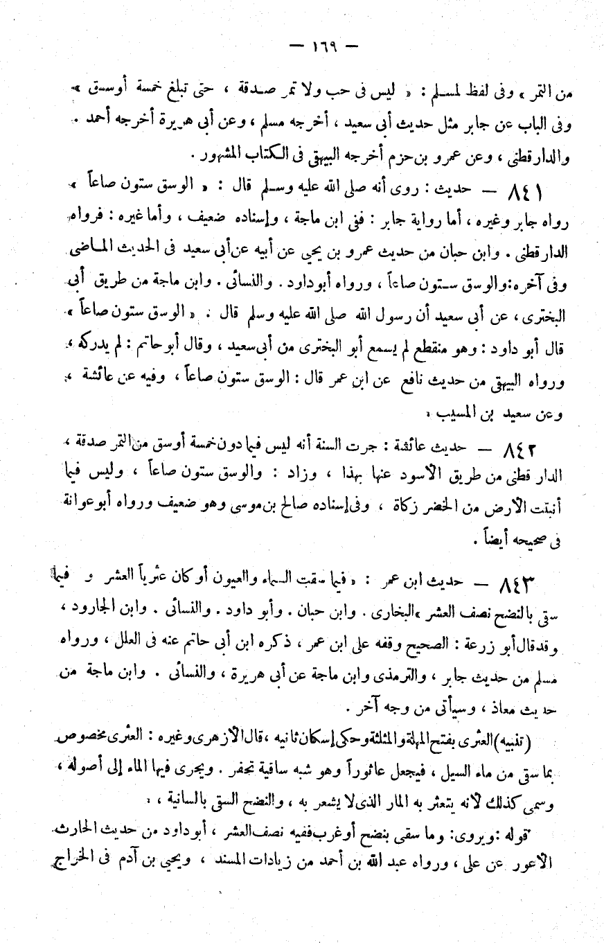 843 - حديث بن عمر فيما سقت السماء والعيون أو كان عثريا العشر وفيما سقي بالنضح نصف العشر البخاري وابن حبان وأبو داود والنسائي وابن الجارود وقد قال أبو زرعة الصحيح وقفه على بن عمر ذكره بن أبي حاتم عنه في العلل ورواه مسلم من حديث جابر والترمذي وابن ماجة عن أبي هريرة والنسائي وابن ماجة من حديث معاذ وسيأتي من وجه آخر