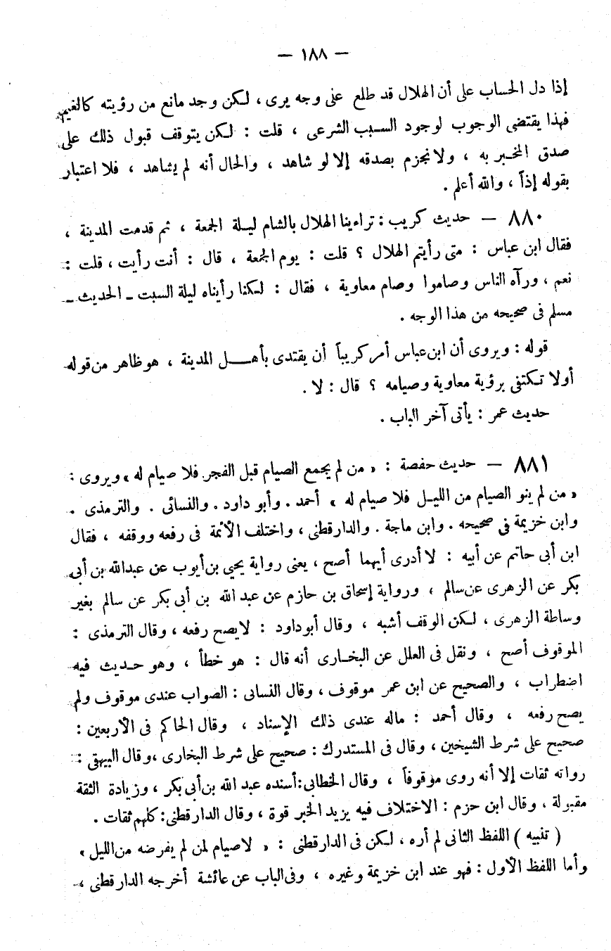880 - حديث كريب تراءينا الهلال بالشام ليلة الجمعة ثم قدمت المدينة فقال بن عباس متى رأيتم الهلال قلت يوم الجمعة قال أنت رأيت قلت نعم ورآه الناس وصاموا وصام معاوية فقال لكنا رأيناه ليلة السبت الحديث مسلم في صحيحه من هذا الوجه