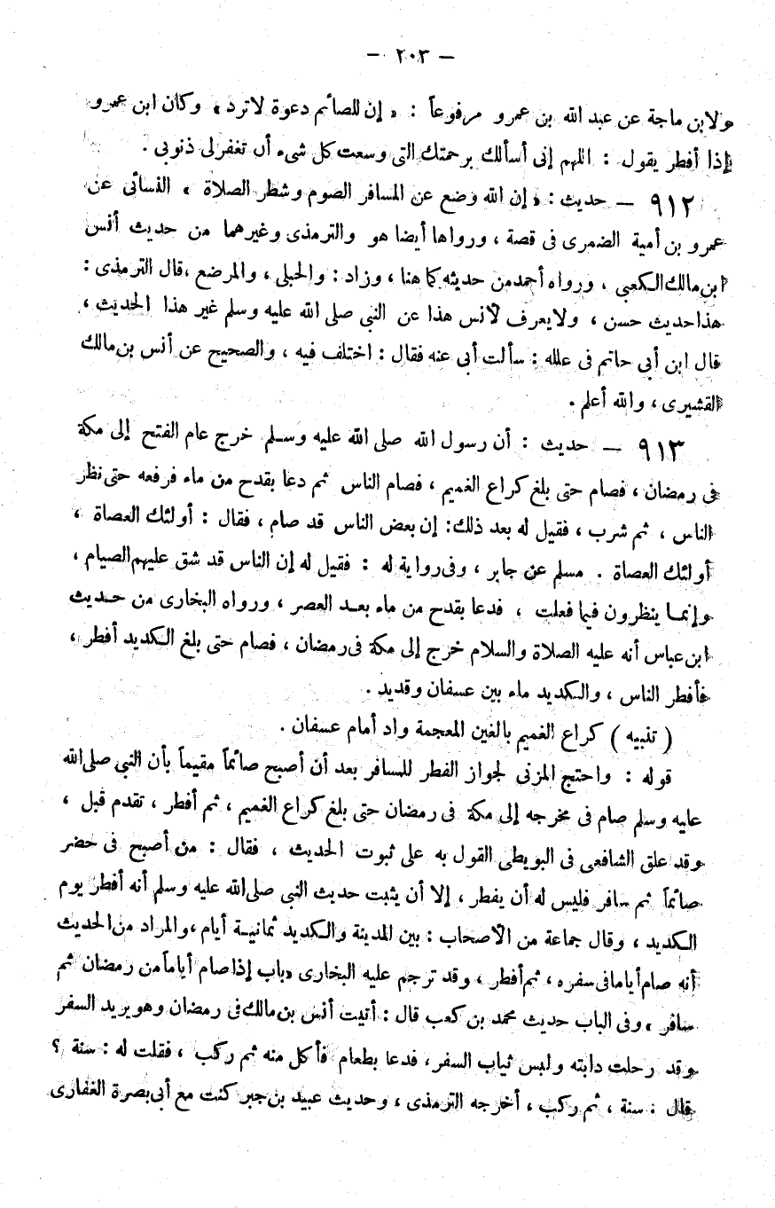 913 - حديث أن رسول الله صلى الله عليه و سلم خرج عام الفتح إلى مكة في رمضان فصام حتى بلغ كراع الغميم فصام الناس ثم دعا بقدح من ماء فرفعه حتى نظر الناس ثم شرب فقيل له بعد ذلك إن بعض الناس قد صام فقال أولئك العصاة أولئك العصاة مسلم عن جابر وفي رواية له فقيل له إن الناس قد شق عليهم الصيام وإنما ينظرون فيما فعلت فدعا بقدح من ماء بعد العصر ورواه البخاري من حديث بن عباس أنه عليه الصلاة و السلام خرج إلى مكة في رمضان فصام حتى بلغ الكديد أفطر فأفطر الناس والكديد ماء بين عسفان وقديد