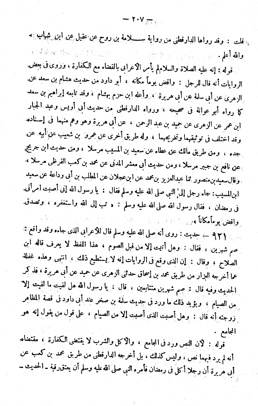 921 - حديث روي أنه صلى الله عليه و سلم قال للأعرابي الذي جاءه وقد واقع صم شهرين فقال وهل أتيت إلا من قبل الصوم هذا اللفظ لا يعرف قاله بن الصلاح وقال إن الذي وقع في الروايات إنه لا يستطيع ذلك انتهى وهذه غفلة عما أخرجه البزار من طريق محمد بن إسحاق حدثني الزهري عن حميد عن أبي هريرة فذكر الحديث وفيه قال صم شهرين متتابعين قال يا رسول الله هل لقيت ما لقيت إلا من الصيام ويؤيد ذلك ما ورد في حديث سلمة بن صخر عند أبي داود في قصة المظاهر زوجته أنه قال وهل أصبت الذي أصبت إلا من الصيام على قول من يقول إنه هو المجامع