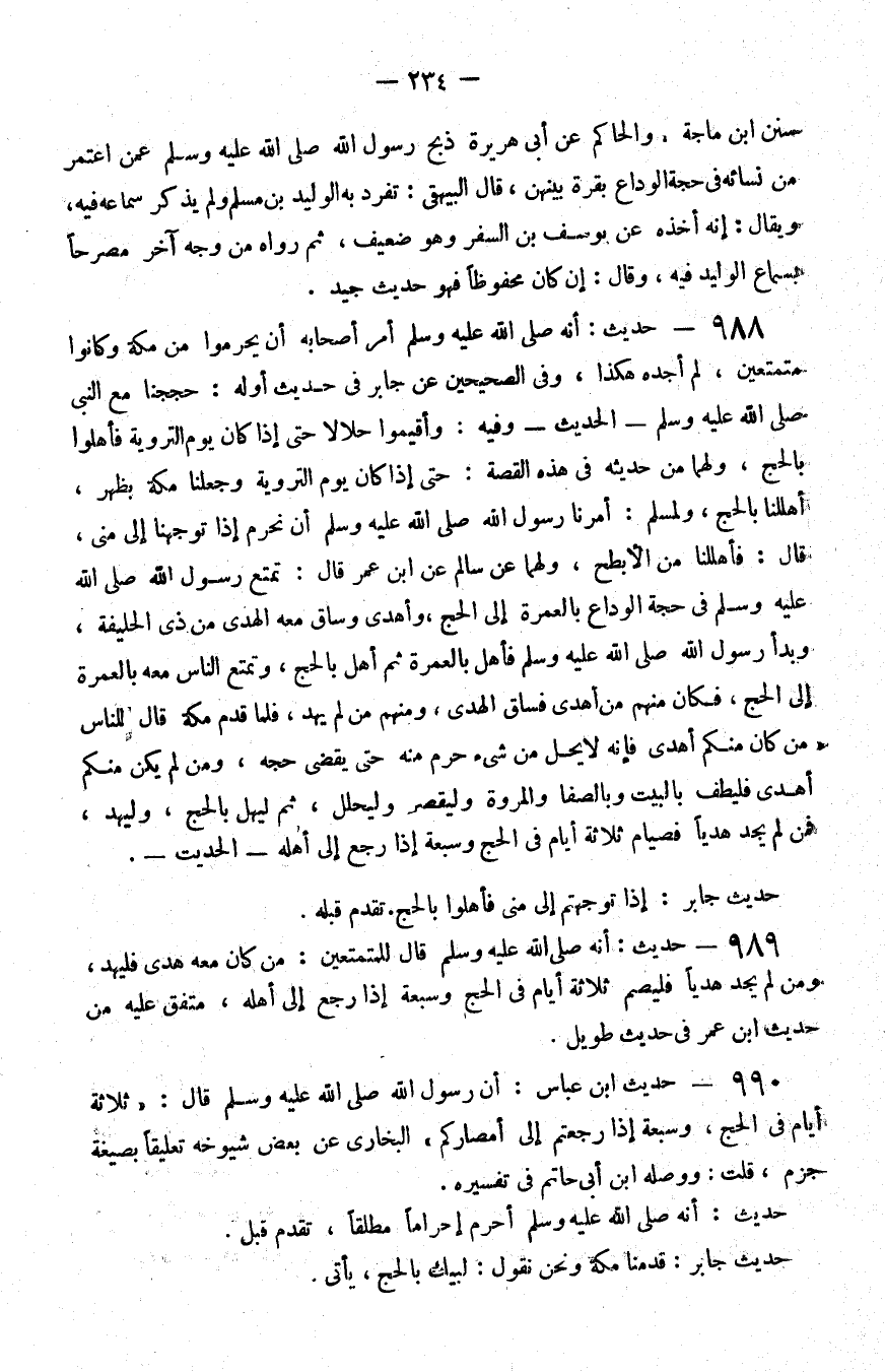 988 - حديث أنه صلى الله عليه و سلم أمر أصحابه أن يحرموا من مكة وكانوا متمتعين لم أجده هكذا وفي الصحيحين عن جابر في حديث أوله حججنا مع النبي صلى الله عليه و سلم الحديث وفيه وأقيموا حلالا حتى إذا كان يوم التروية فأهلوا بالحج ولهما من حديثه في هذه القصة حتى إذا كان يوم التروية وجعلنا مكة بظهر أهللنا بالحج ولمسلم أمرنا رسول الله صلى الله عليه و سلم أن نحرم إذا توجهنا إلى منى قال فأهللنا من الأبطح ولهما عن سالم عن بن عمر قال تمتع رسول الله صلى الله عليه و سلم في حجة الوداع بالعمرة إلى الحج وأهدى وساق معه الهدي من ذي الحليفة وبدأ رسول الله صلى الله عليه و سلم فأهل بالعمرة ثم أهل بالحج وتمتع الناس معه بالعمرة إلى الحج فكان منهم من أهدى فساق الهدي ومنهم من لم يهد فلما قدم مكة قال للناس من كان منكم أهدى فإنه لا يحل من شيء حرم منه حتى يقضي حجه ومن لم يكن منكم أهدى فليطف بالبيت وبالصفا والمروة وليقصر وليحلل ثم ليهل بالحج وليهد فمن لم يجد هديا فصيام ثلاثة أيام في الحج وسبعة إذا رجع إلى أهله الحديث