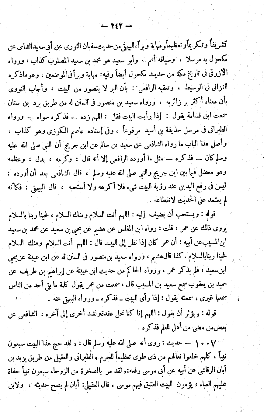1007 - حديث روي أنه صلى الله عليه و سلم قال لقد حج هذا البيت سبعون نبيا كلهم خلعوا نعالهم من ذي طوى تعظيما للحرم الطبراني والعقيلي من طريق يزيد بن أبان الرقاشي عن أبيه عن أبي موسى رفعه لقد مر بالصخرة من الروحاء سبعون نبيا حفاة عليهم العباء يؤمون البيت العتيق فيهم موسى قال العقيلي أبان لم يصح حديثه ولابن