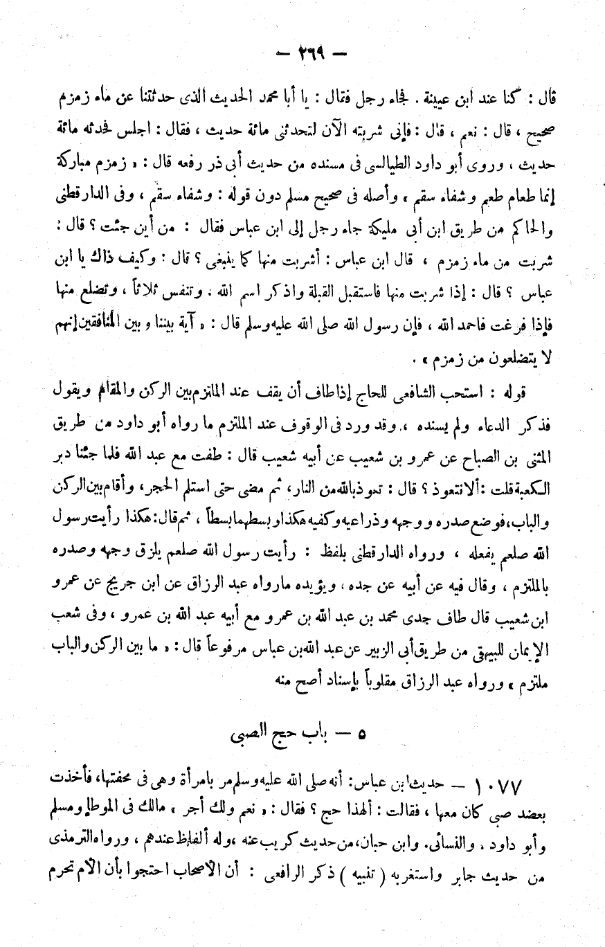 1077 - حديث بن عباس أنه صلى الله عليه و سلم مر بامرأة وهي في محفتها فأخذت بعضد صبي كان معها فقالت ألهذا حج فقال نعم ولك أجر مالك في الموطأ ومسلم وأبو داود والنسائي وابن حبان من حديث كريب عنه وله ألفاظ عندهم ورواه الترمذي من حديث جابر واستغربه