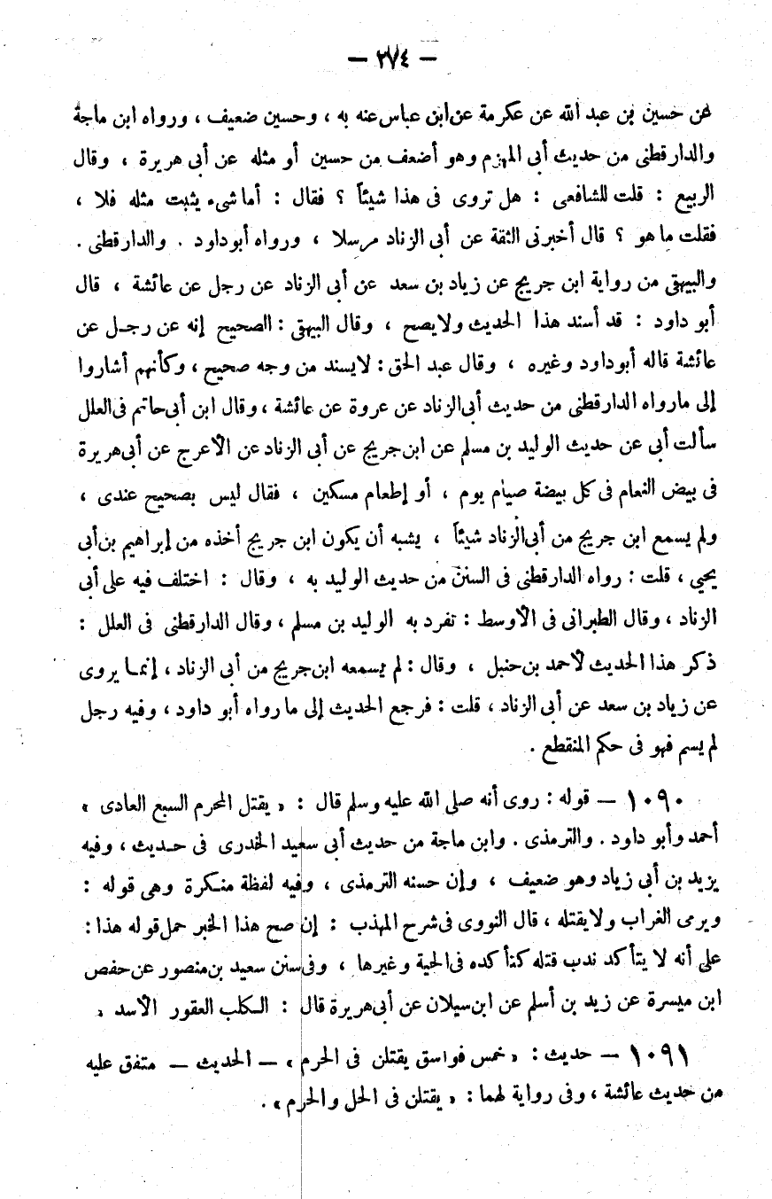 1091 - حديث خمس فواسق يقتلن في الحرم الحديث متفق عليه من حديث عائشة وفي رواية لهما يقتلن في الحل والحرم
