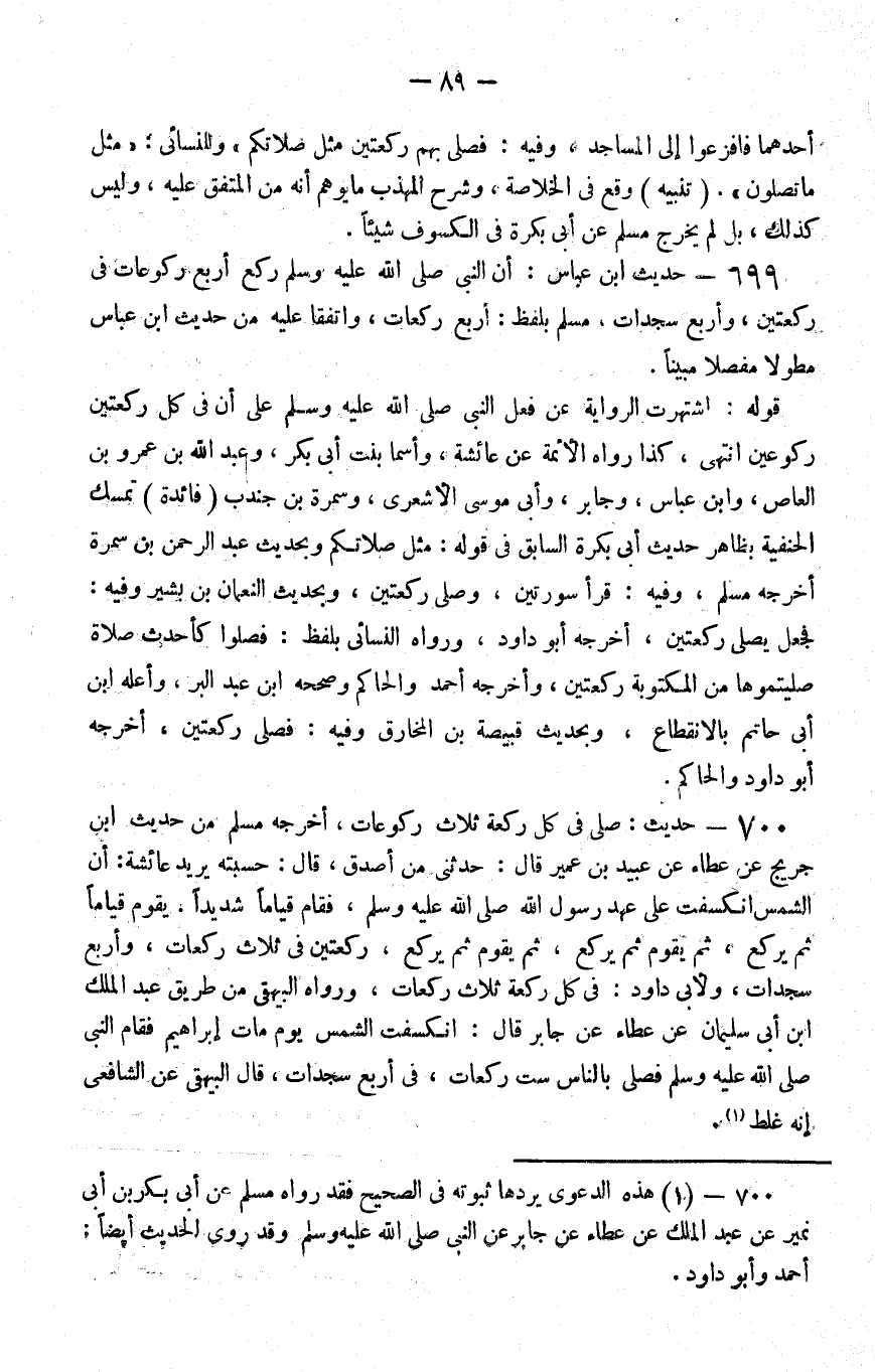 699 - حديث بن عباس أن النبي صلى الله عليه و سلم ركع أربع ركوعات في ركعتين وأربع سجدات مسلم بلفظ أربع ركعات واتفقا عليه من حديث بن عباس مطولا مفصلا مبينا