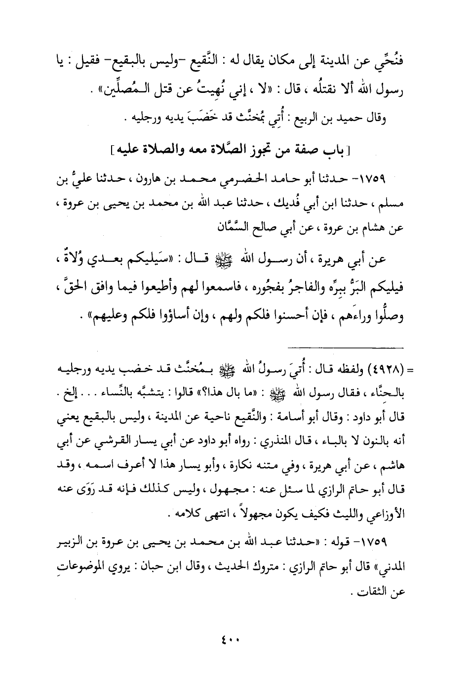 1759 - حَدَّثَنَا أَبُو حَامِدٍ مُحَمَّدُ بْنُ هَارُونَ ثنا عَلِيُّ بْنُ مُسْلِمٍ , ثنا ابْنُ أَبِي فُدَيْكٍ , ثنا عَبْدُ اللَّهِ بْنُ مُحَمَّدِ بْنِ يَحْيَى بْنِ عُرْوَةَ , عَنْ هِشَامِ بْنِ عُرْوَةَ , عَنْ أَبِي الصَّالِحِ السَّمَّانِ , عَنْ أَبِي هُرَيْرَةَ , أَنَّ رَسُولَ اللَّهِ صَلَّى اللهُ عَلَيْهِ وَسَلَّمَ قَالَ: § «سَيَلِيكُمْ بَعْدِي وُلَاةٌ , فَيَلِيكُمُ الْبَرُّ بِبِرِّهِ وَالْفَاجِرُ بِفُجُورِهِ , فَاسْمَعُوا لَهُمْ وَأَطِيعُوا فِيمَا وَافَقَ الْحَقَّ , وَصَلُّوا وَرَاءَهُمْ فَإِنْ أَحْسَنُوا فَلَكُمْ وَلَهُمْ وَإِنْ أَسَاءُوا فَلَكُمْ وَعَلَيْهِمْ»