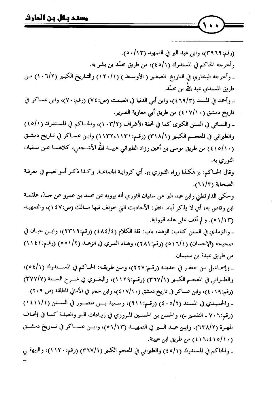 - والترمذي في السنن كتاب: الزهد، باب: قلة الكلام (٤/ ٤٨٤) (رقم: ٢٣١٩)، وابن حبان في صحيحه (الإحسان) (١/ ٥١٦) (رقم: ٢٨١)، وهناد السري في الزهد (٢/ ٥٥١) (رقم: ١١٤١) من طريق عبدة بن سليمان.
