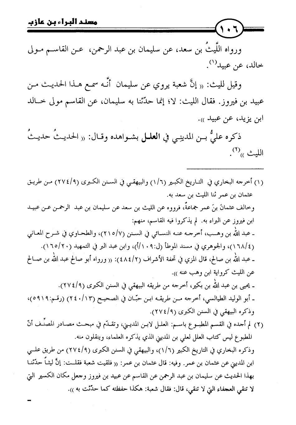 (١) أخرجه البخاري في التاريخ الكبير (١/ ٦) والبيهقي في السنن الكبرى (٩/ ٢٧٤) من طريق عثمان بن عمر ثنا الليث بن سعد به.