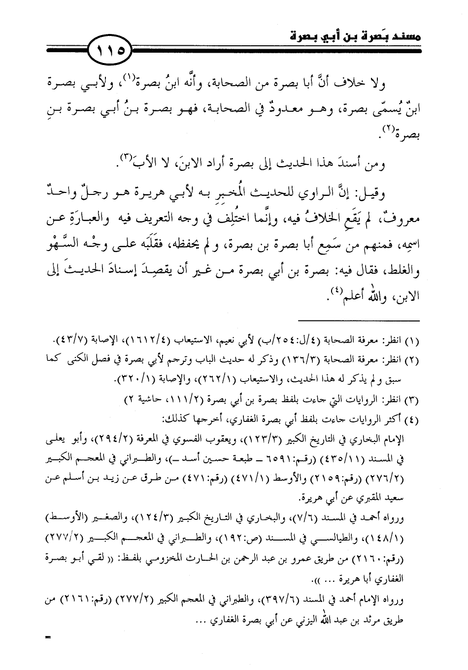 (٣) انظر: الروايات التي جاءت بلفظ بصرة بن أبي بصرة (٢/ ١١١، حاشية ٢).